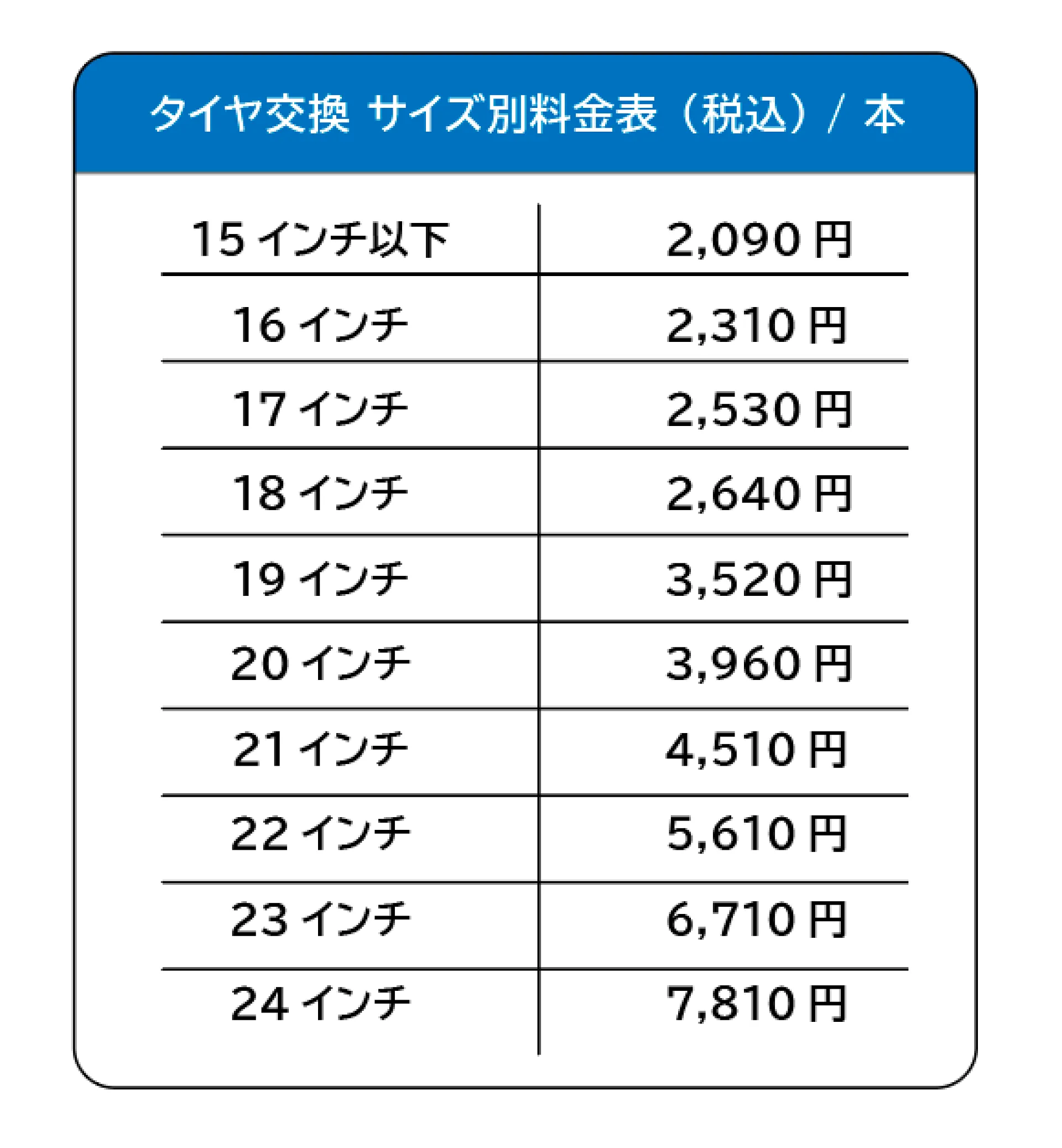 ※料金は全国統一基本工賃に基づきますが、お車の状態やホイール形状、付帯作業によって総額は変動します。