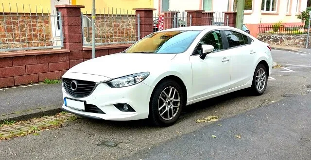 お車はマツダ アテンザ/ホワイトパール。