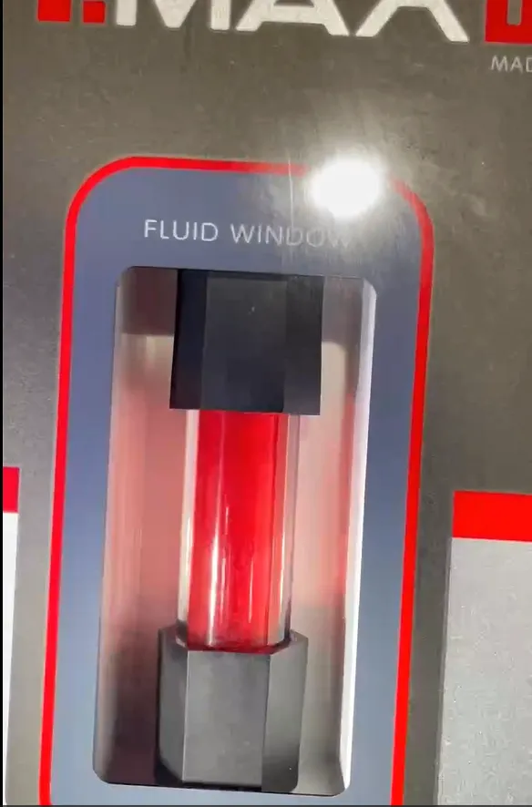 透明窓付きタンクを採用しており、交換前後のフルード状態が一目で分かります。